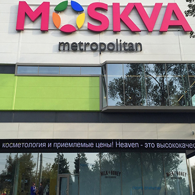 Декоративное оформление входной группы торгового центра в г.Алматы