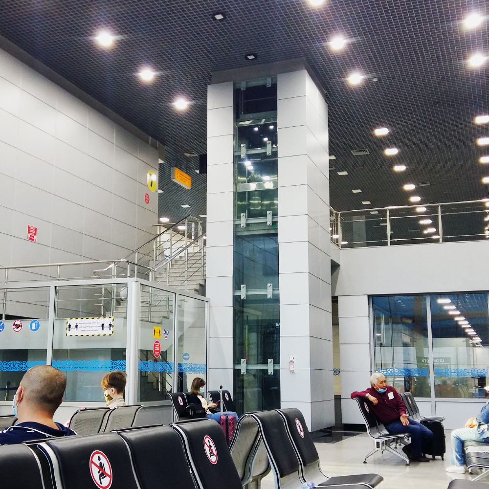 Основное освешение в аэропорту города Алматы. В терминале авиакомпании Air Astana.